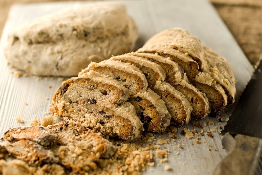 かるべシュトーレンはきび砂糖を使うので見た目が茶色い。